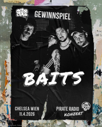 Hier der Link zum Gewinnspiel: www.pirateradio.at/aktuell www.instagram.com/pirateradio_the_alternative www.facebook.com/pirateradiothealternative BAITS pendeln zwischen Punk-Energie, Pop-Instinkt und dem schwitzigen Charme der 90er Jahre, mit viel rauer Energie und gezielt platzierter Kante – roh, melodisch und immer ein bisschen unberechenbar.